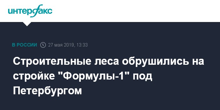 Москва. 27 мая. INTERFAX.RU - На строительстве объектов трассы "Формулы-1" под Санкт-Петербургом обрушились строительные леса, сообщил "Интерфаксу" источник в службе скорой помощи Ленобласти.