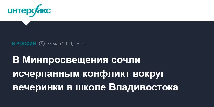 В Минпросвещения сочли исчерпанным конфликт вокруг вечеринки в школе Владивостока