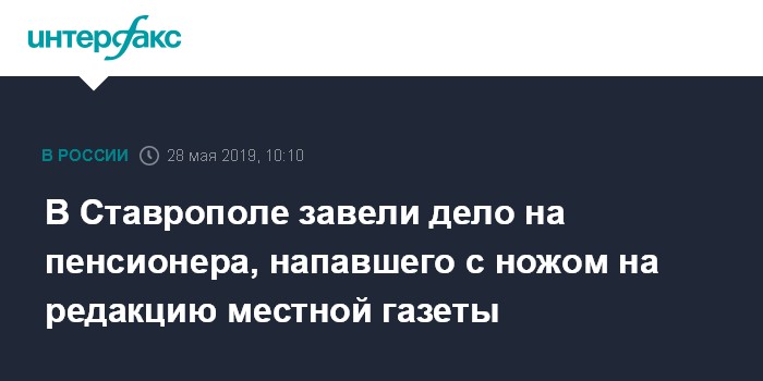 В Ставрополе завели дело на пенсионера, напавшего с ножом на редакцию местной газеты
