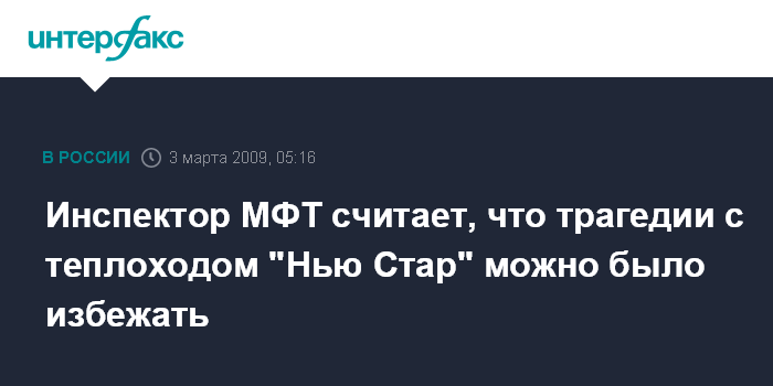 Инспектор МФТ считает, что трагедии с теплоходом "Нью Стар" можно было избежать