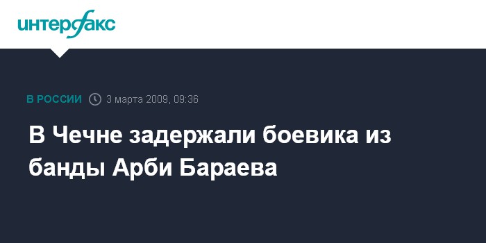 "В Завадском районе Грозного в поселке Черноречье сотрудники МВД РФ в ходе проведения оперативно - розыскных мероприятий по месту жительства задержали боевика, неработающего, который в период с сентября по декабрь 2006 года состоял в банды Арби Бараева (уничтожен в 2001 году - "ИФ")", - рассказал собеседник агентства.