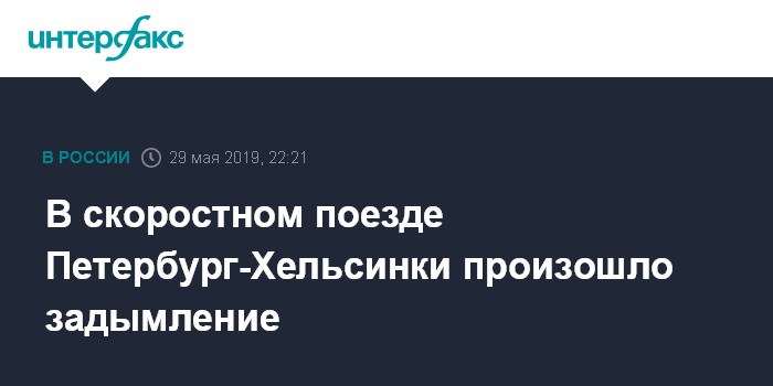 Москва. 29 мая. INTERFAX.RU - Короткое замыкание спровоцировало сильное задымление в международном скоростном поезде Петербург-Хельсинки, сообщил "Интерфаксу" источник в службах транспортного надзора северной столицы.