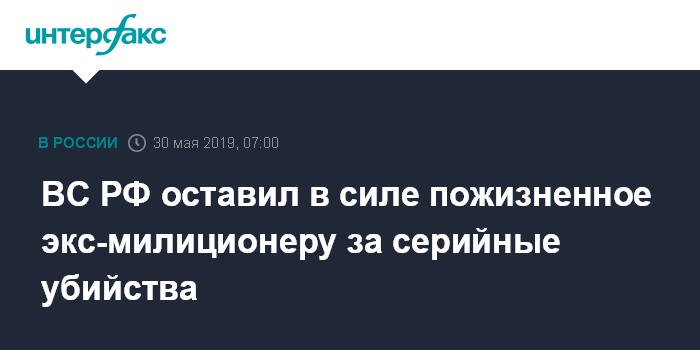 ВС РФ оставил в силе пожизненное экс-милиционеру за серийные убийства
