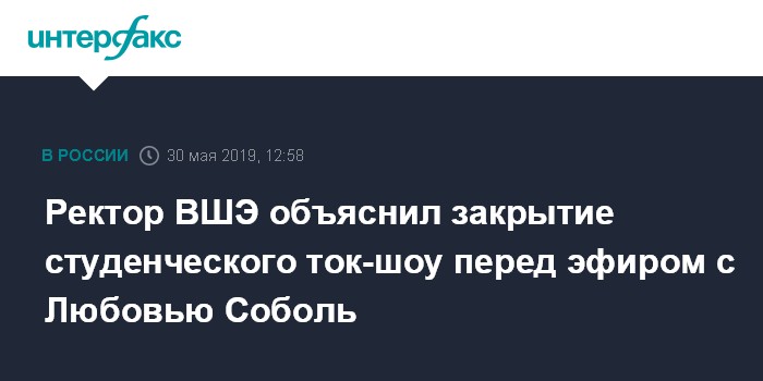 Ректор ВШЭ объяснил закрытие студенческого ток-шоу перед эфиром с Любовью Соболь