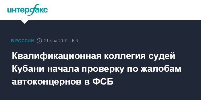 Москва. 31 мая. INTERFAX.RU - Квалификационная коллегия судей Краснодарского края начала проверку по заявлению российских подразделений мировых автопроизводителей о систематических нарушениях их прав в судах Краснодарского края.