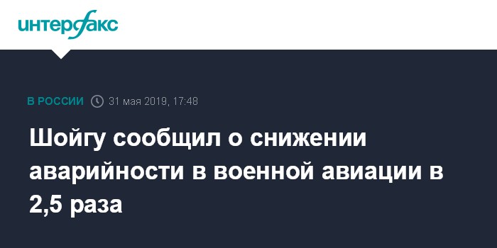 Москва. 31 мая. INTERFAX.RU - За последние несколько лет количество аварий с военными самолетами снизилось в 2,5 раза, заявил на коллегии Минобороны глава ведомства Сергей Шойгу.