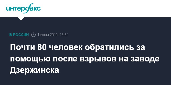 Москва. 1 июня. INTERFAX.RU - За медицинской помощью после взрыва на оборонном заводе в нижегородском Дзержинске обратились более 70 человек, заявили в Минздраве России.