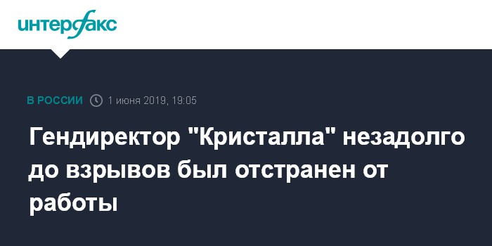 Гендиректор "Кристалла" незадолго до взрывов был отстранен от работы