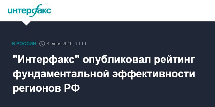 "Интерфакс" опубликовал рейтинг фундаментальной эффективности регионов РФ