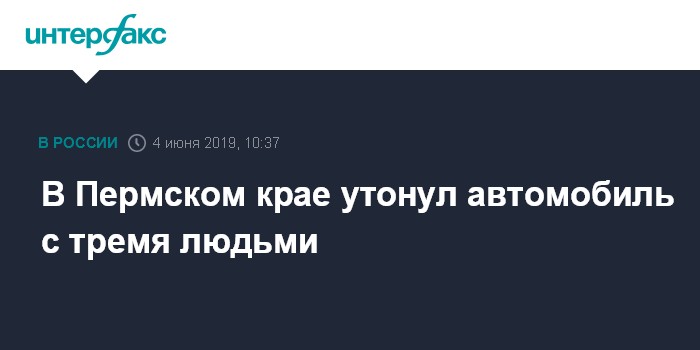 Москва. 4 июня. INTERFAX.RU - Три человека утонули вместе с машиной, которая съехала в реку в Пермском крае. Об этом сообщили агентству "Интерфакс" в пресс-службе краевого управления СКР во вторник.