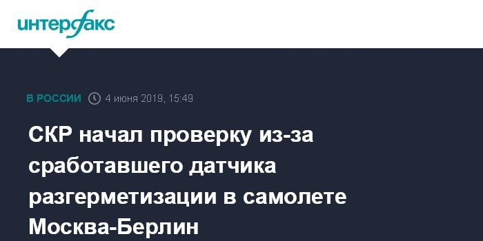 Москва. 4 июня. INTERFAX.RU - Следователи начали доследственную проверку по факту срабатывания датчика разгерметизации в самолете Москва-Берлин, который вернулся в столичный аэропорт "Внуково", сообщила "Интерфаксу" представитель Московского межрегионального управления на транспорте СК Елена Марковская.