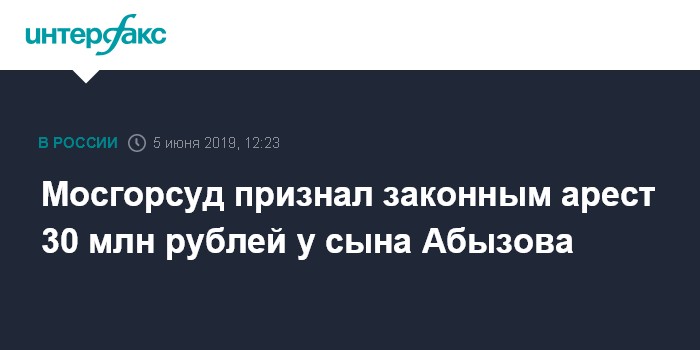 Мосгорсуд признал законным арест 30 млн рублей у сына Абызова