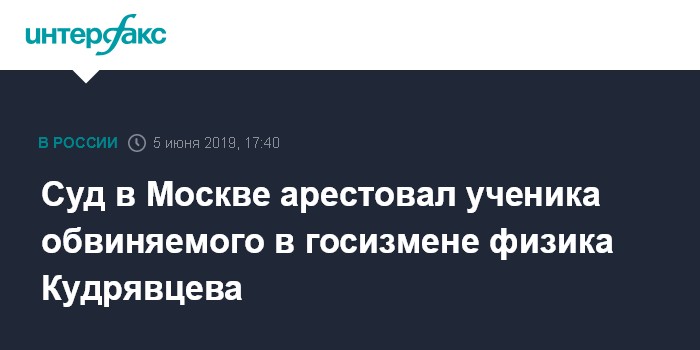Суд в Москве арестовал ученика обвиняемого в госизмене физика Кудрявцева