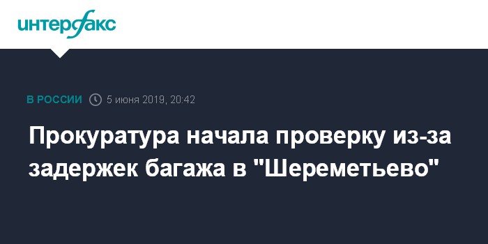 Москва. 5 июня. INTERFAX.RU - Московская межрегиональная транспортная прокуратура решила разобраться с массовыми задержками с выдачей багажа в столичном аэропорту "Шереметьево" и организовала проверку, сообщили "Интерфаксу" в пресс-службе ММТП.