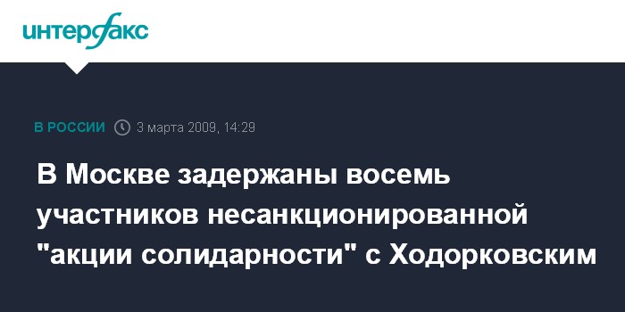 Координатор движения Олег Козловский сообщил "Интерфаксу", что все задержанные доставлены в ОВД "Хамовники". "Активисты "Обороны" "проводили акцию солидарности с Михаилом Ходорковским и Платоном Лебедевым", - сказал Козловский, добавив, что акция была несанкционированной.