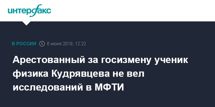 Арестованный за госизмену ученик физика Кудрявцева не вел исследований в МФТИ