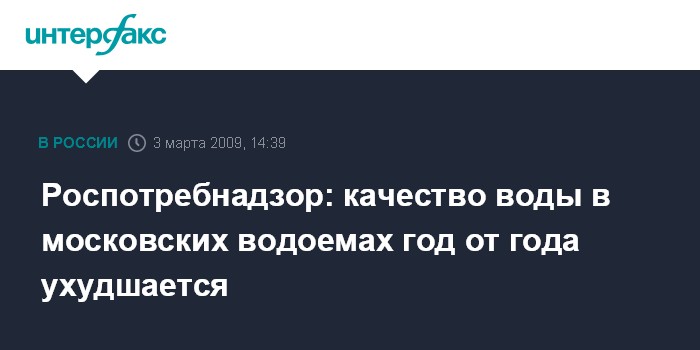 Москва. 3 марта. INTERFAX.RU - За последние пять лет качество воды в московских водоемах значительно ухудшилось, сообщил глава столичного управления Роспотребнадзора Николай Филатов на заседании городского правительства во вторник.