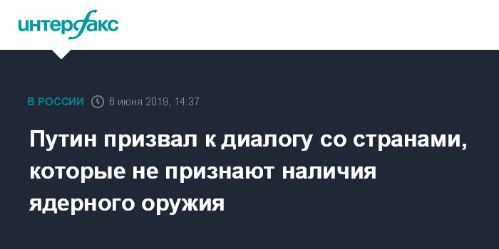 Москва. 6 июня. INTERFAX.RU - Все ядерные страны должны быть привлечены к дискуссии по стратегической стабильности, заявил президент РФ Владимир Путин.