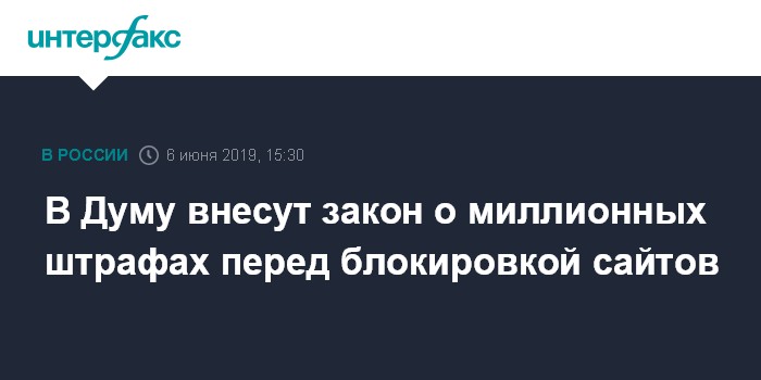 В Думу внесут закон о миллионных штрафах перед блокировкой сайтов