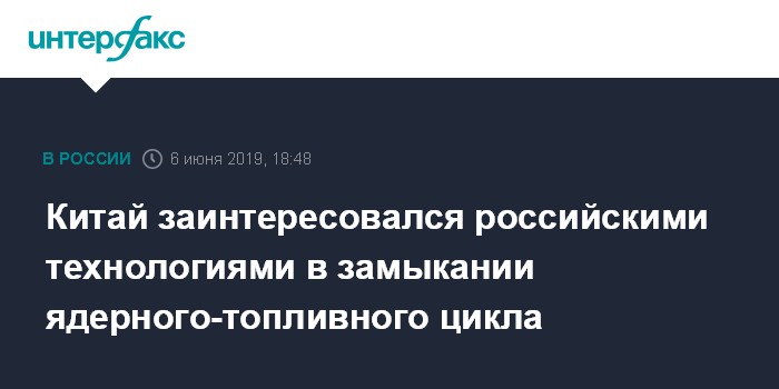 Китай заинтересовался российскими технологиями в замыкании ядерного-топливного цикла