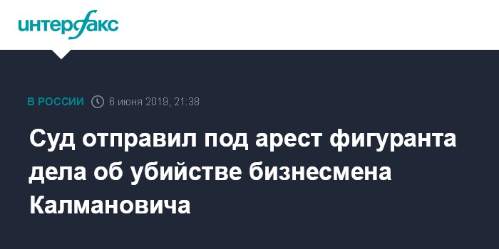 Москва. 6 июня. INTERFAX.RU - Пресненский суд Москвы отправил под арест одного из фигурантов дела об убийстве бизнесмена Шабтая Калмановича в 2009 году, передал корреспондент "Интерфакса".