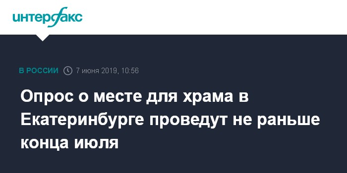 Москва. 7 июня. INTERFAX.RU - Глава Екатеринбурга Александр Высокинский в пятницу заявил, что опрос горожан по поводу места для строительства храма святой Екатерины может пройти в конце июля или осенью.