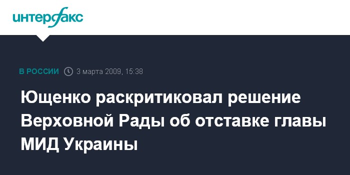 Москва. 3 марта. INTERFAX.RU - Отставка министра иностранных дел Украиын Владимира Огрызко Верховной Радой является несвоевременной и безосновательной, считает президент Украины Виктор Ющенко.