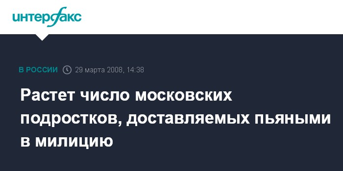 Москва. 29 марта. ИНТЕРФАКС-МОСКВА - Более 14 тыс. подростков в прошлом году доставлялись в отделения внутренних дел за употребление алкогольных напитков, сообщается в ежегодном докладе уполномоченного по правам ребенка в Москве Алексея Голованя, которым располагает "Интерфакс".