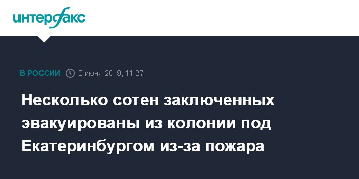 Москва. 8 июня. INTERFAX.RU - Заключенные эвакуированы из колонии строгого режима в поселке Гари Свердловской области, где утром начался пожар, сообщил агентству "Интерфакс" представитель регионального УФСИН.