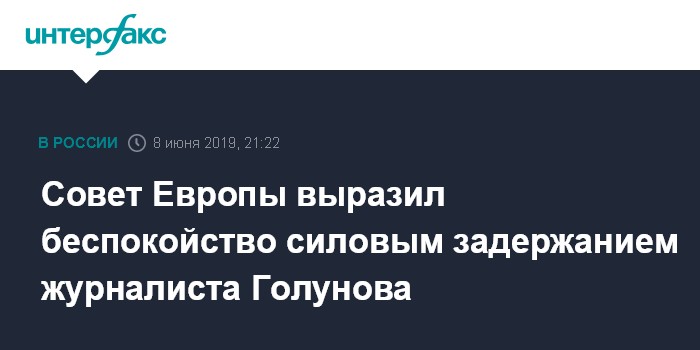 Москва. 8 июня. INTERFAX.RU - В Совете Европы обеспокоены силовым задержанием в Москве журналиста Ивана Голунова.