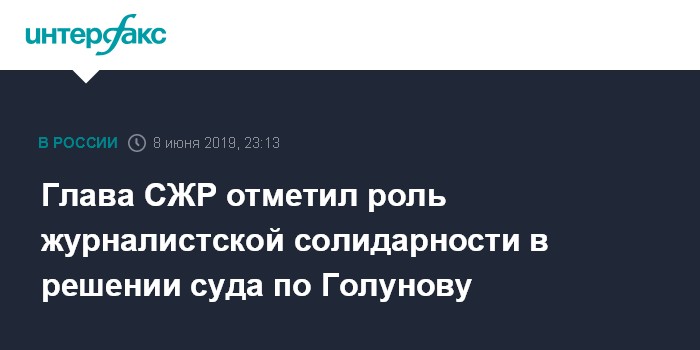 Москва. 8 июня. INTERFAX.RU - Председатель Союза журналистов России Владимир Соловьев считает, что журналистская и гражданская солидарность сказалась на решении суда - не отправлять спецкора "Медузы" Ивана Голунова в СИЗО.