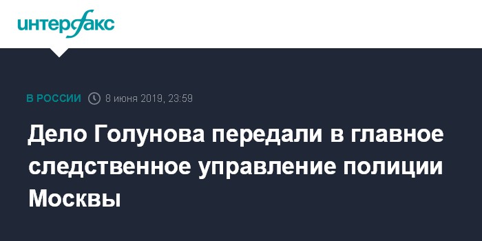 Москва. 8 июня. INTERFAX.RU - Уголовное дело журналиста онлайн-издания "Медуза" Ивана Голунова передано из западного округа в главное следственное управление столичной полиции.