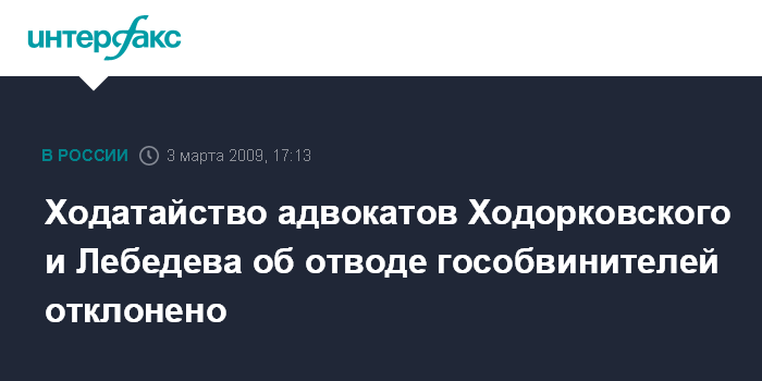 Ходатайство адвокатов Ходорковского и Лебедева об отводе гособвинителей отклонено