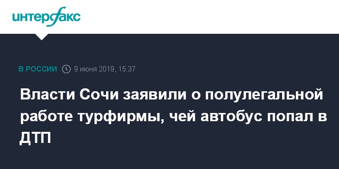 Москва. 9 июня. INTERFAX.RU - Власти Сочи заявляют о нарушениях в работе туристической фирмы "Фишт", микроавтобус которой стал участником ДТП в воскресенье.