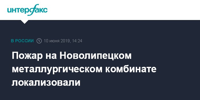 Москва. 10 июня. INTERFAX.RU - В Липецке локализован пожар в одном из цехов Новолипецкого металлургического комбината (НЛМК). Возгорание в доменной печи локализовали на площади 30 кв. м, рассказал "Интерфаксу" источник в службах технического надзора региона.