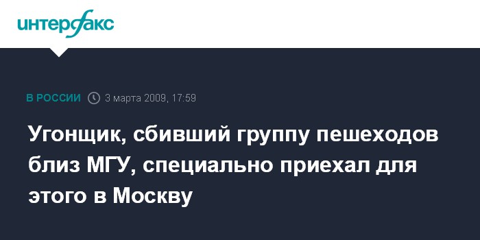 Угонщик, сбивший группу пешеходов близ МГУ, специально приехал для этого в Москву
