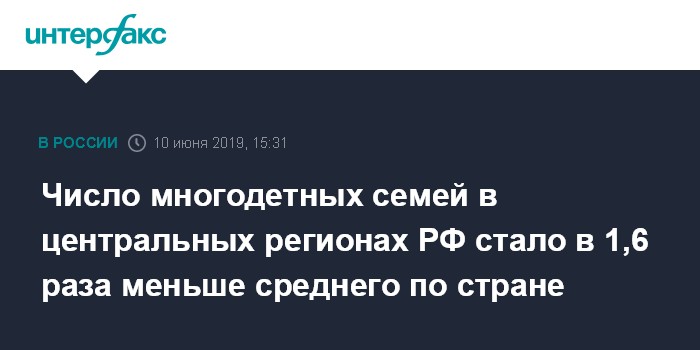 Число многодетных семей в центральных регионах РФ стало в 1,6 раза меньше среднего по стране