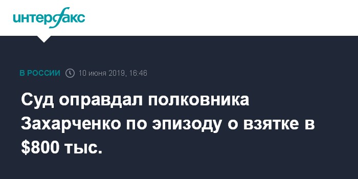 Суд оправдал полковника Захарченко по эпизоду о взятке в $800 тыс.