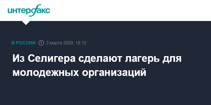 Москва. 3 марта. INTERFAX.RU - Озеро Селигер станет площадкой для всех российских молодежных организаций, а не только для движения "Наши", сообщил заместитель министра спорта, туризма и молодежной политики РФ Олег Рожнов.