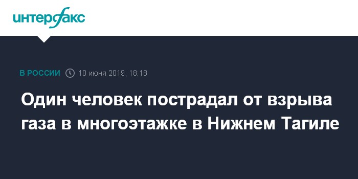 Москва. 10 июня. INTERFAX.RU - Бытовой газ взорвался в жилой многоэтажке в Нижнем Тагиле. Об этом сообщил "Интерфаксу" источник в экстренных службах региона в понедельник.