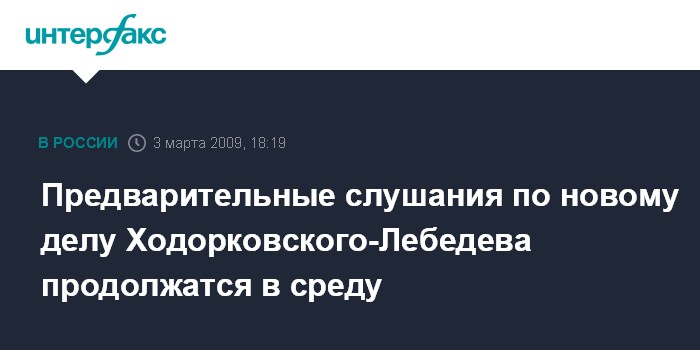 Москва. 3 марта. INTERFAX.RU - Хамовнический суд Москвы объявил перерыв до среды, 4 марта, в предварительном слушании по новому уголовному делу в отношении экс-главы НК "ЮКОС" Михаила Ходорковского и бывшего главы МФО "МЕНАТЕП" Платона Лебедева.
