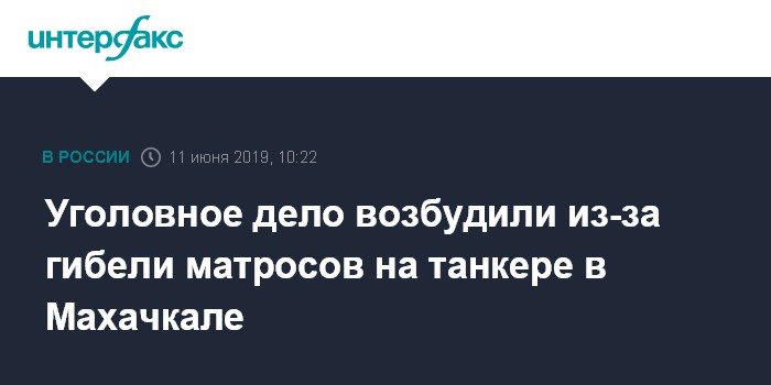Москва. 11 июня. INTERFAX.RU - Уголовное дело возбуждено по факту гибели членов экипажа танкера в Махачкале, сообщает пресс-служба Южного следственного управления СК РФ.
