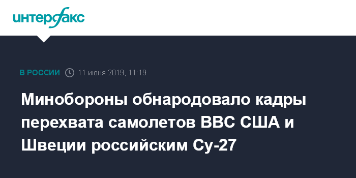 Москва. 11 июня. INTERFAX.RU - Минобороны РФ опубликовало на своем канале в YouTube видео перехвата российским истребителем Су-27 приближающихся к границе страны в районе Балтики самолетов-разведчиков ВВС США и Швеции.