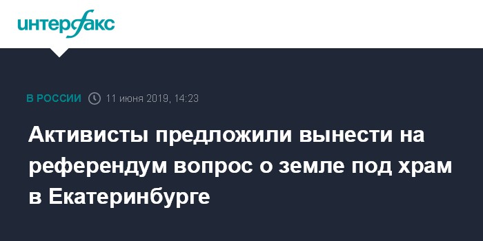 Москва. 11 июня. INTERFAX.RU - В Екатеринбурге инициативная группа предложила вынести на референдум вопрос о статусе участка, на котором в городе построят церковь Святой Екатерины: будет это земля общего пользования или религиозного назначения. Об этом "Интерфаксу" сообщил один из авторов предложения.