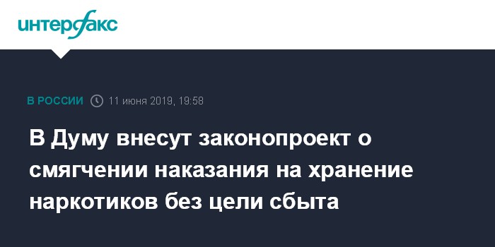 Москва. 11 июня. INTERFAX.RU - В Госдуму скоро могут внести законопроект о смягчении ответственности за хранение наркотиков, не связанное с их сбытом. Об этом "Интерфаксу" рассказал депутат-единоросс Николай Брыкин, глава думской рабочей группы, которая занимается совершенствованием законодательства о борьбе с незаконным оборотом наркотиков.