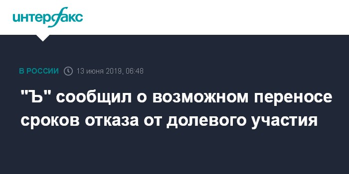 "Ъ" сообщил о возможном переносе сроков отказа от долевого участия
