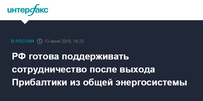 РФ готова поддерживать сотрудничество после выхода Прибалтики из общей энергосистемы