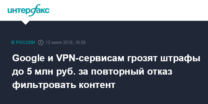 Google и VPN-сервисам грозят штрафы до 5 млн руб. за повторный отказ фильтровать контент
