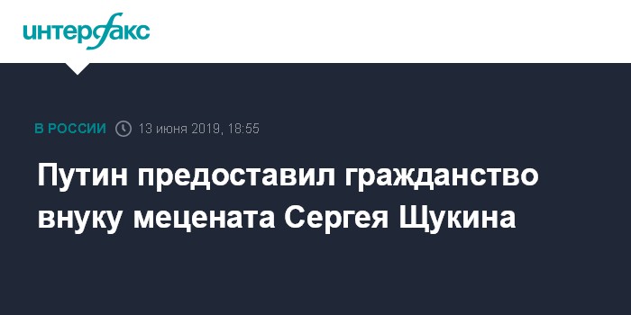 Путин предоставил гражданство внуку мецената Сергея Щукина