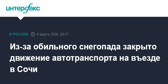 Из-за обильного снегопада закрыто движение автотранспорта на въезде в Сочи